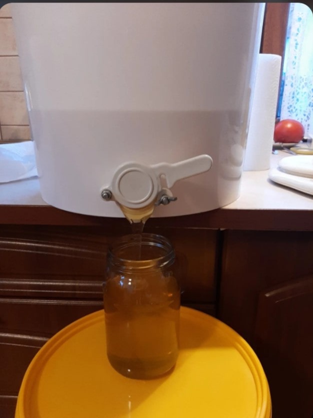 Ramki bardzo szybko wirują i miód pod wpływem siły odśrodkowej wylatuje z ramki i spływa po ściankach na dno wirówki.
