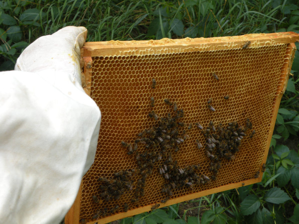 My musimy ten wosk odsklepić z ramki żeby dostać się do miodu.