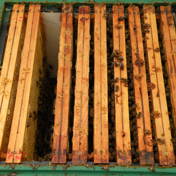 W miodni są plastry, do których pszczoły przynoszą miód. Ramki z miodem (plastry) odbieramy jak miód dojrzeje (osiągnie odpowiednią konsystencję).