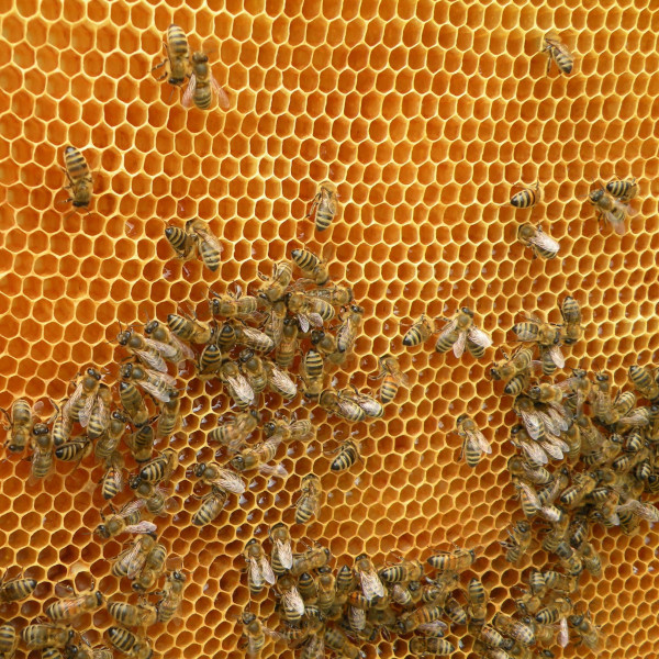 Pszczoły jak napełnią całą komórke miodem to ją zamykają woskiem.